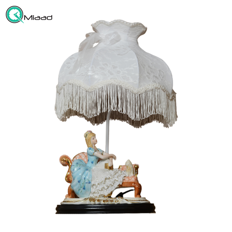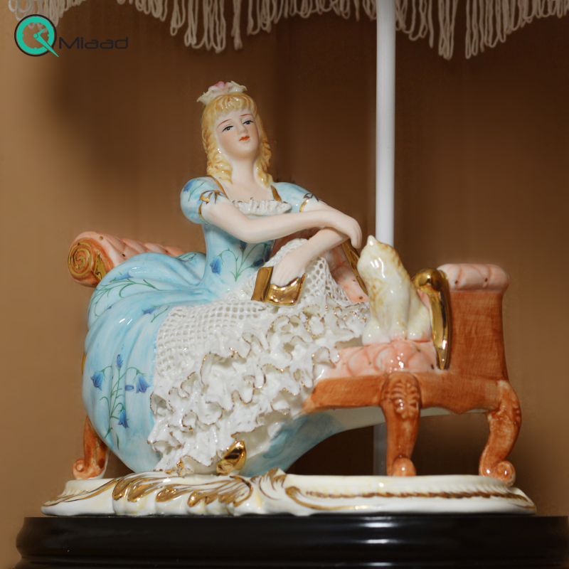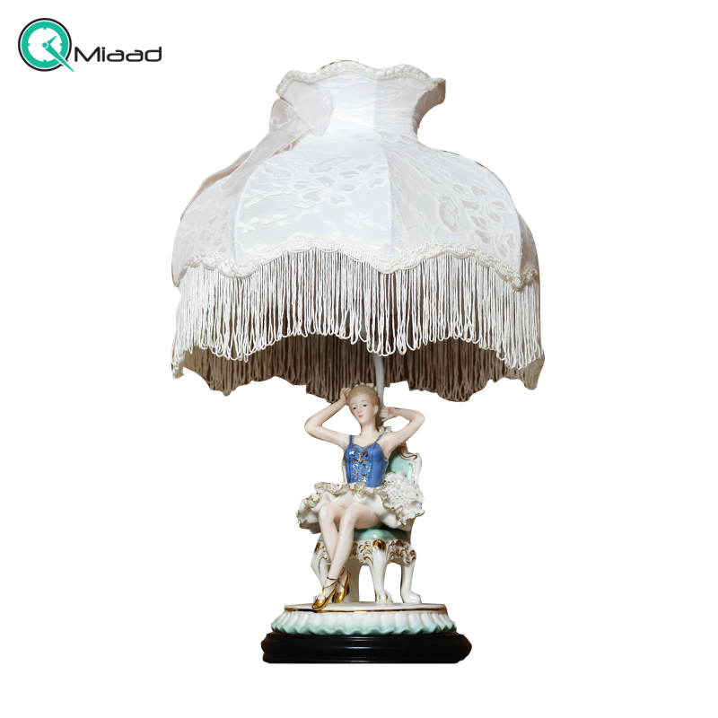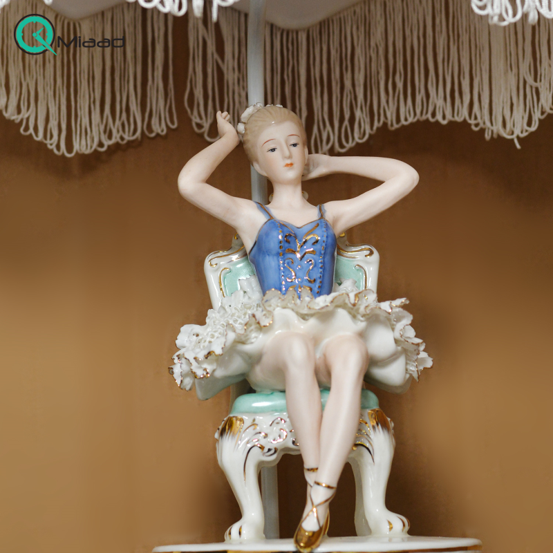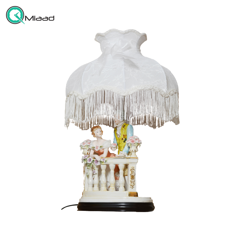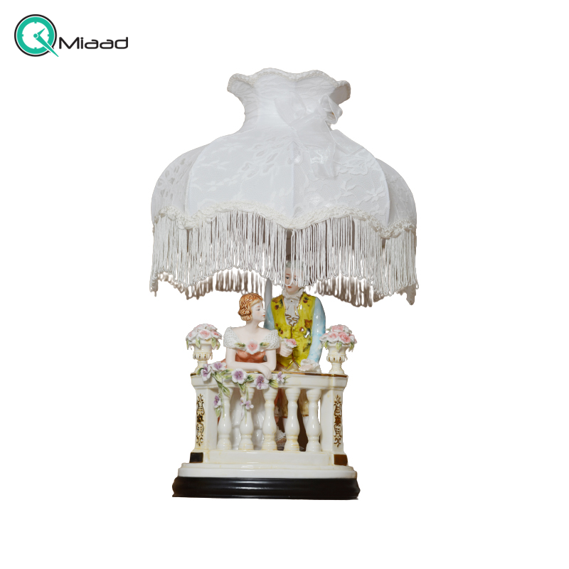 آباژور رومیزی سلطنتی، آباژور زینتی چینی رنسانس دو نفره روی بالکن دو شکل چینی با جزئیات ریز روی بالکن کد 1021