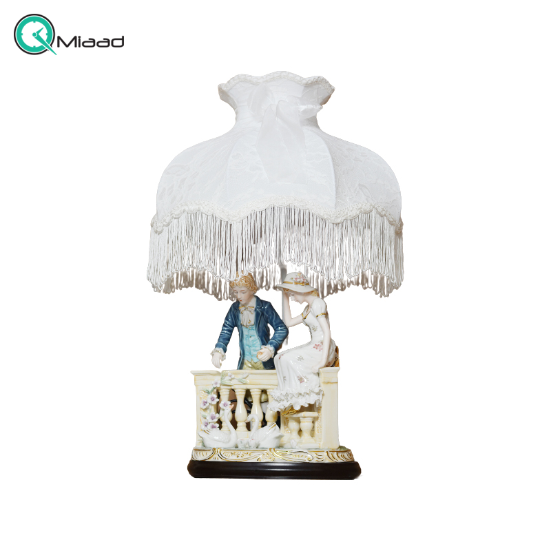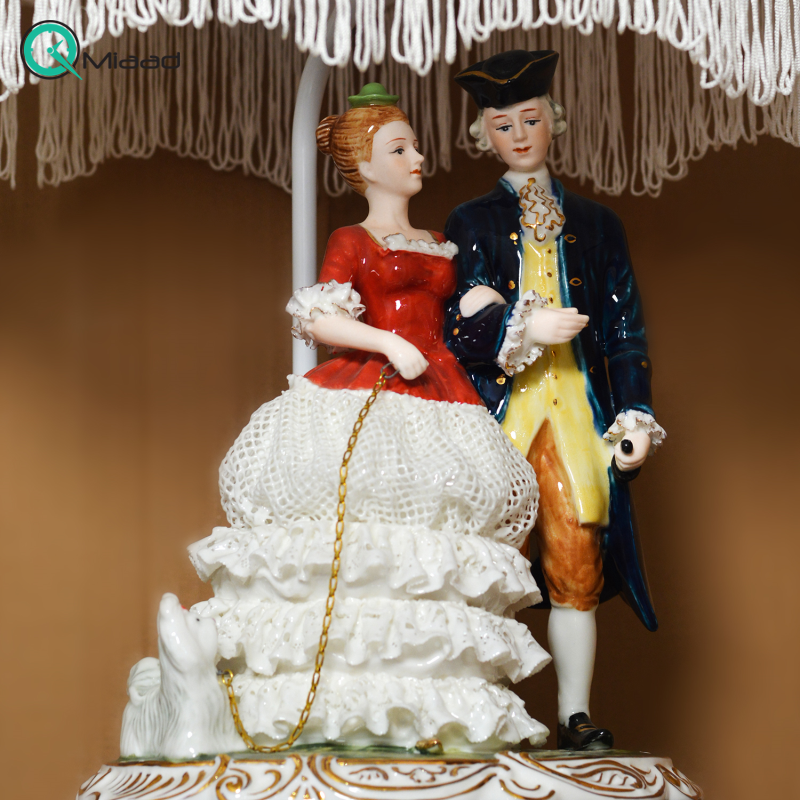 آباژور رومیزی سلطنتی که علاوه بر نور رسانی و روشن کردن محیط، می‌تواند تاثیر بسزایی در زیبایی دکوراسیون داشته باشد. آباژور زینتی چینی رنسانس دو نفره روی بالکن بیانگر مجسمه کوچک یک زوج است که در کنار هم ایستاده و حس خوبی را به بیننده منتقل می‌کند. وقتی نور آباژور روشن می‌شود، خیلی جلوه آرامش بخشی را به بیننده هدیه می‌دهد. بالکن و گل های تزیینی روی بالکن هم به هر چه زیبا تر شدن این محصول کمک کرده است. شما می توانید به راحتی این محصول را از این سایت سفارش دهید و در زمان مناسب درب منزل تحویل بگیرید. به یاد داشته باشید که ارسال در تهران رایگان است.