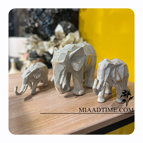 مجسمه فیل اوریگامی سه سایز رزینی کد 1476، مجسمه دکوری رنگ دست ترکیب شده با پتینه، رنگ پتینه کهنه