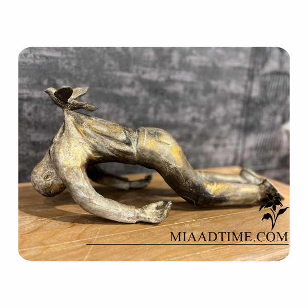مجسمه آدمک و پرنده پتینه گدازه، مجسمه دکوری رنگ دست ترکیب شده با پتینه، کد 1522