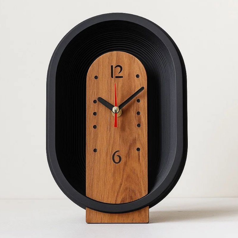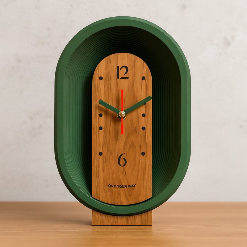 اگر به دکور مدرن و متفاوت علاقه دارید، ساعت رومیزی مدل  ریپل دقیقاً همان چیزی است که به فضا جان تازه‌ای می‌دهد. طراحی این ساعت به‌گونه‌ای انجام شده که فرم بیضی با خطوط موج‌دار اطراف، حس ریتم و حرکت را منتقل می‌کند و چهره‌ی یکنواخت میز را به یک نقطه‌ی چشم‌گیر تبدیل می‌نماید.