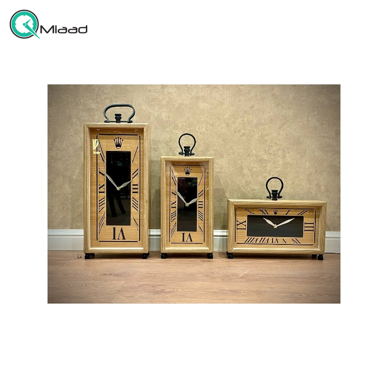 ساعت رومیزی رولکس مدل 50041، ساعت رومیزی مستطیل سه سایز از جنس بدنه ام دی اف روکش بلوط با موتور آرامگرد مناسب میز کار و میز کنسول