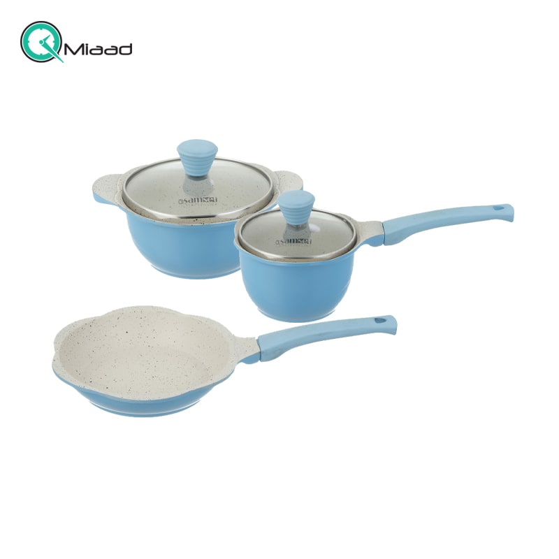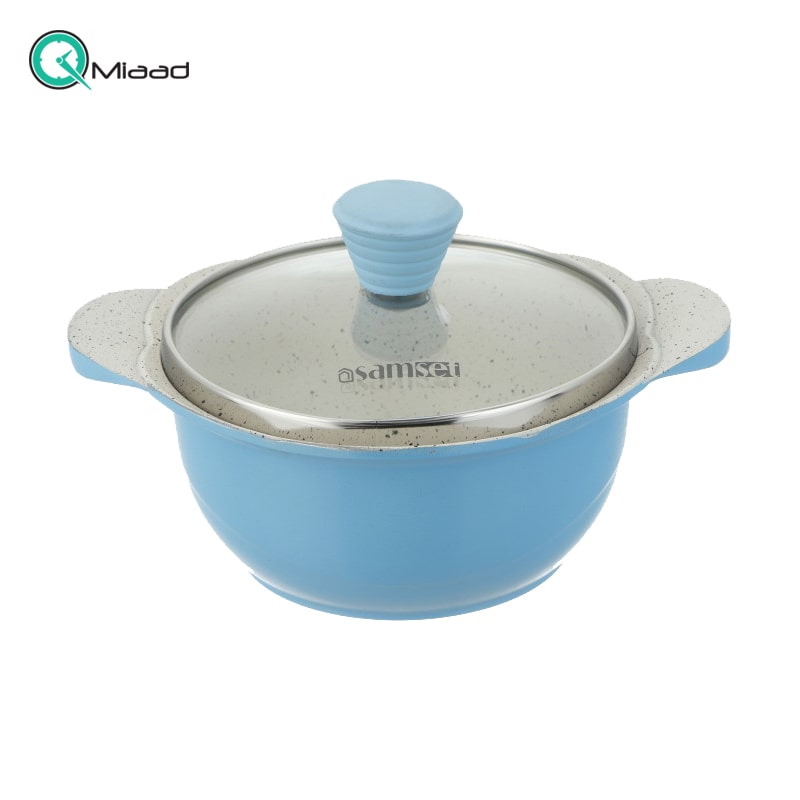 لایه های آلومینیومی مقاوم و درب شیشه ای با دوام، رنگ بندی شاد و مناسب، نچسب بودن کف تابه، مناسب سیمونی، رنگ آبی