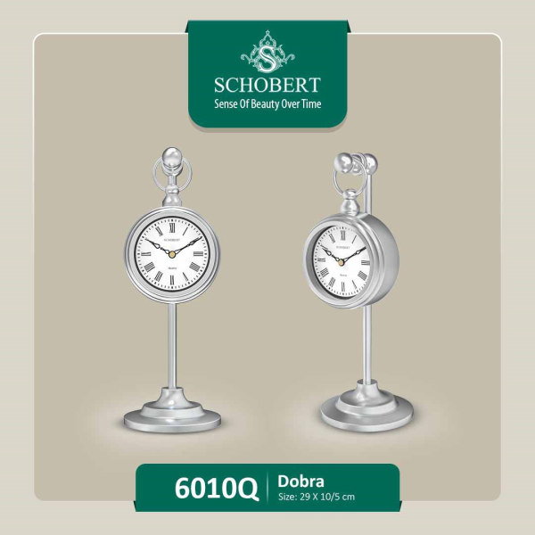 ساعت رومیزی شوبرت، ساعت رومیزی جدید از جنس فلز آبکاری شده با موتور آرامگرد مناسب میز کار و میز کنسول، رنگ نقرهای کد 6010