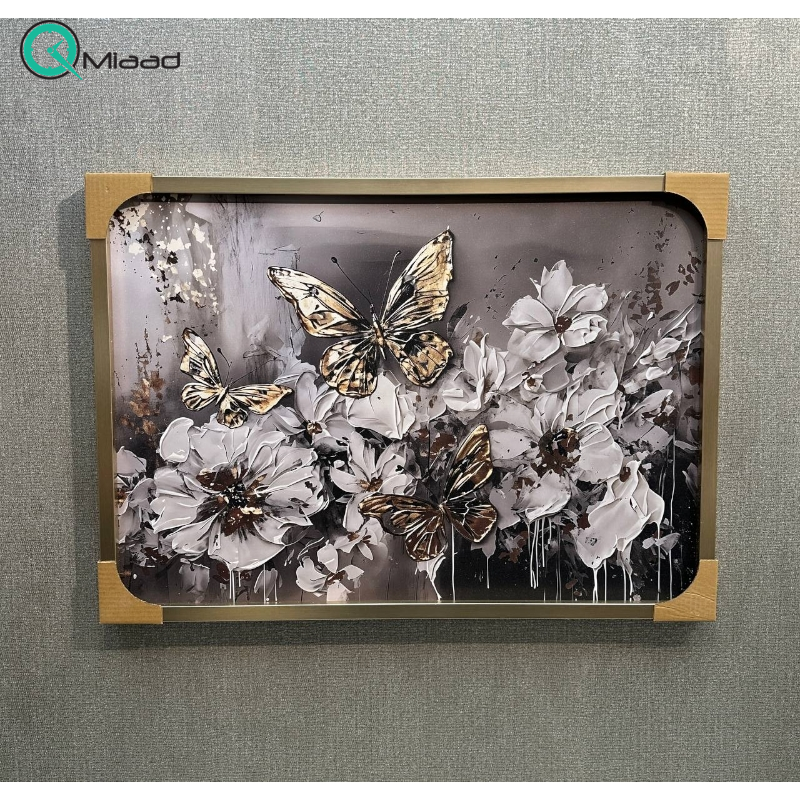تابلو با فریم پی وی سی با کیفیت ساخت بالا، زیبایی بصری چشمگیر، طرح های بی نظیر روی تابلو، طرح گل ها و پروانه