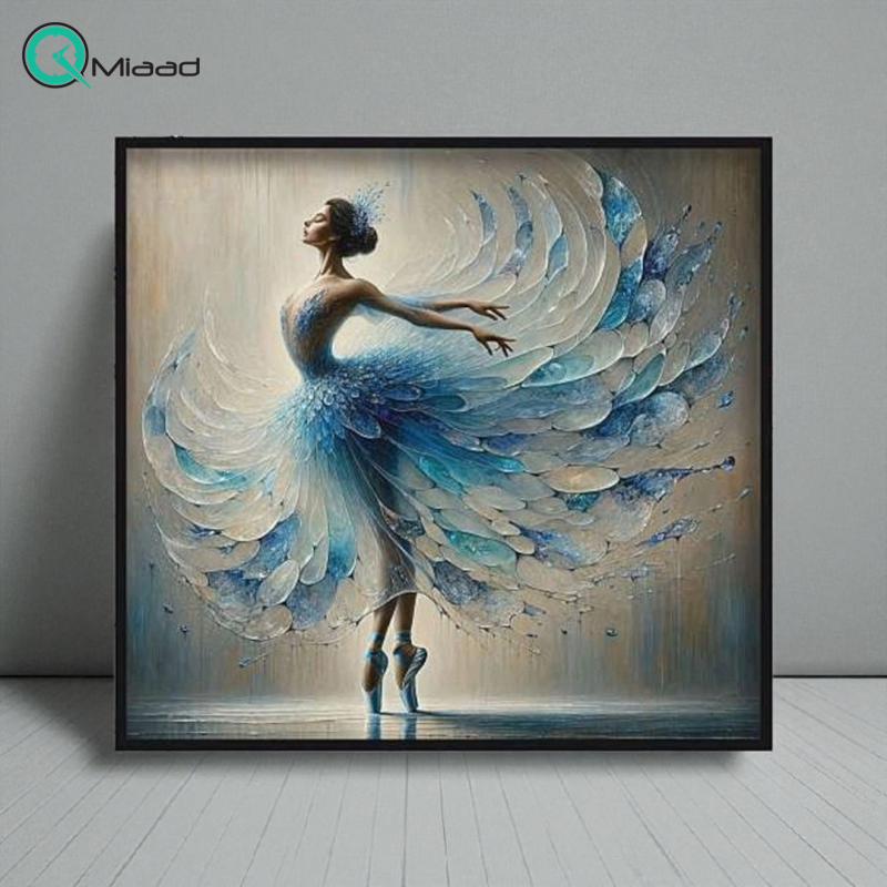 تابلوی آرامش در رقص اثری هنری که توسط میعاد تایم عرضه می‌شود. در این تابلو بالرینی با لباس آبی سفید در حال رقص باله به تصویر کشیده شده؛ گویی در لحظه‌ای سرشار از شور و خلسه غرق شده و از دنیای بیرون فاصله گرفته است. تلفیق رنگ‌های آبی و سفید با تکنیک‌های نقاشی خلاقانه، حسی از سبکی، لطافت و آرامش را به فضای اثر بخشیده و بیننده را نیز همراه با بالرین به سفری شاعرانه می‌برد. پس‌زمینه‌ی ساده و درخشش لباس، تمرکز را بر حرکت و احساس رقص حفظ کرده و تابلو را به اثری ماندگار و چشم‌نواز تبدیل کرده است.