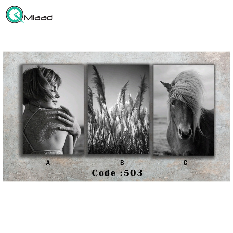 تابلو سه تکه 503 طرح دختر و گندم و اسب