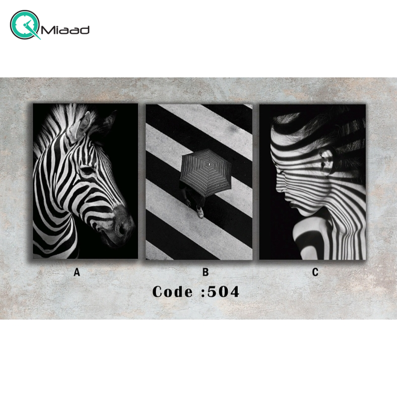 تابلو دکوراتیو شاین مدل 504، جدیدترین مدل تابلو با بالاترین کیفیت چاپ، متریال پی وی سی قاب، تابلو سه تیکه زیبا و جذاب، تابلو هنری با کیفیت فوق العاده و قابل شستشو، طرح دختر و چتر و گورخر