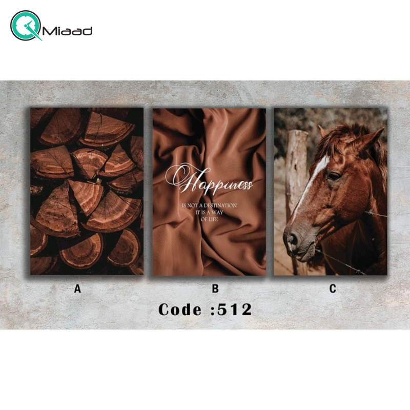 تابلو سه تکه مدل 512 با طرح اسب و چوب و نقل قول محصول امروز میعاد تایم می باشد که برای شما در بخش تابلو موجود کرده ایم. تابلو دکوراتیو دیوارهای خالی را پر می کنند و به هر اتاقی جذابیت می بخشند. آنها دلیل اصلی دکوراسیون دیوار هستند. با مدلهای مختلف موجود، ایجاد مجموعهای از آنها و انتخاب مدل مورد علاقهتان آسان است.