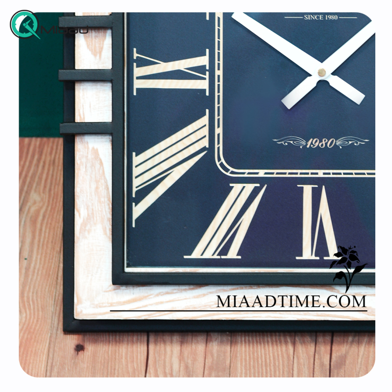 ساعت دیواری مربع چوبی و فلزی 6024