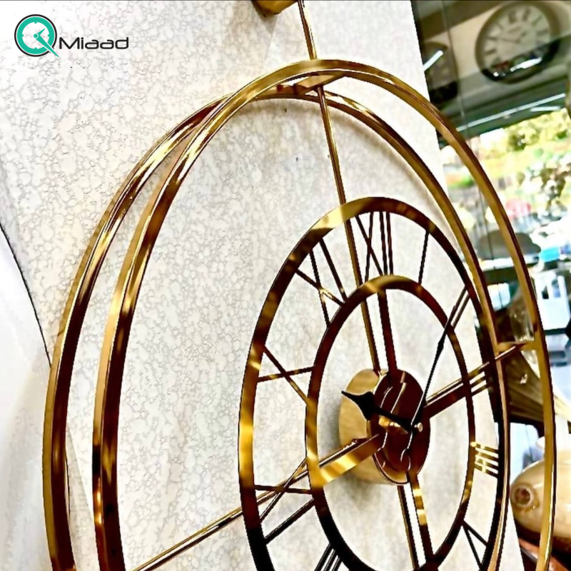 ساعت دیواری تسو مدل 1003، ساعت دیواری مدرن و ساده فلزی قطر 60 سانت با موتور آرامگرد، رنگ طلایی با آبکاری فورتیک