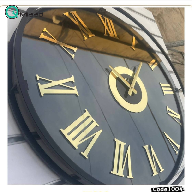 ساعت دیواری تسو مدل 1004، ساعت دیواری مدرن و ساده فلزی قطر 60 سانت با موتور آرامگرد، رنگ مشکی طلایی با آبکاری فورتیک، دارای اعداد رومی برجسته