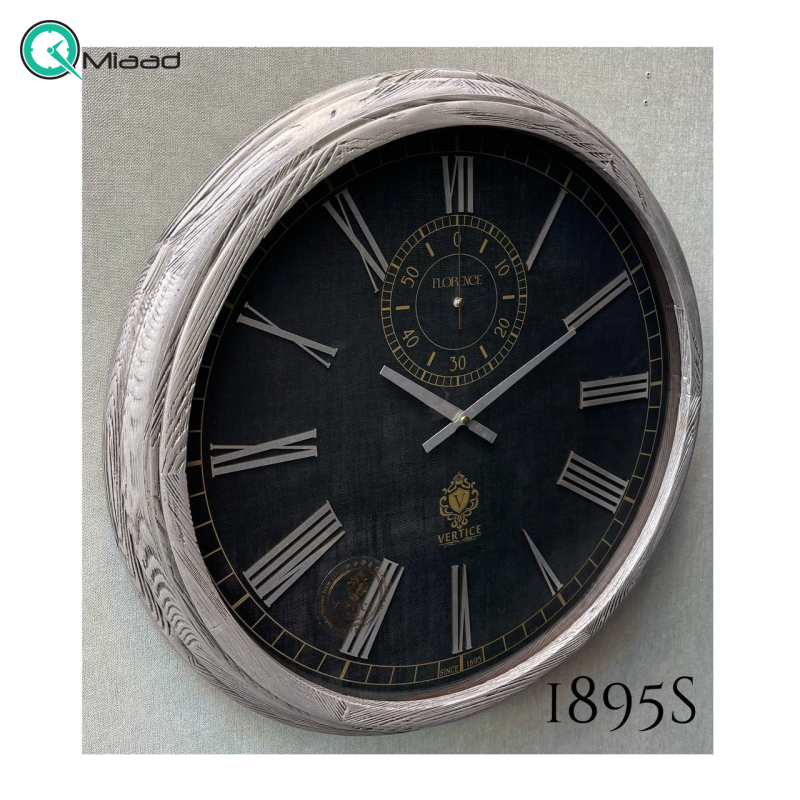 ساعت دیواری چوبی ورتیچ مدل 1895، ساعت دیواری با چوب طبیعی سایز 60 با موتور آرامگرد تایوانی، دارای موتور ثانیه شمار مستقل، اعداد یونانی برجسته، رنگ طوسی