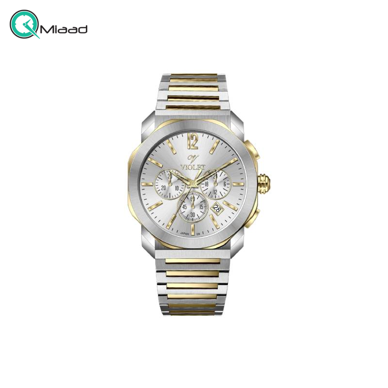 ساعت مچی مردانه ویولت 0628/2 دورنگ طلایی صفحه سفید دارای طراحی زیبا و جذاب با دو رنگ طلایی سفید است. این ساعت دارای بند فلزی کلاسیک با ویژگی سه موتوره کرنوگراف می باشد. همچنین بند فلزی این مدل ضد حساسیت است که خیال شما را در استفاده طولانی مدت راحت می کند. کریستال ضد خش هم یکی دیگر از قابلیت های این ساعت بی نظیر می باشد. میباشد. این ویژگیها این ساعت را مناسب برای استفاده روزمره و موارد خاصی مانند مراسم های رسمی و جشنها میکند. زیبایی این ساعت را باید حس کرد و از عکس این مدل می توان تشخیص داد که در مورد چه ساعت بی نظیری صحبت می کنیم.