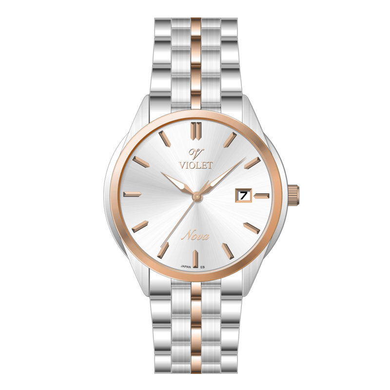 ساعت مچی مردانه ویولت استیل دو رنگ رزگلد (صفحه نقرهای)