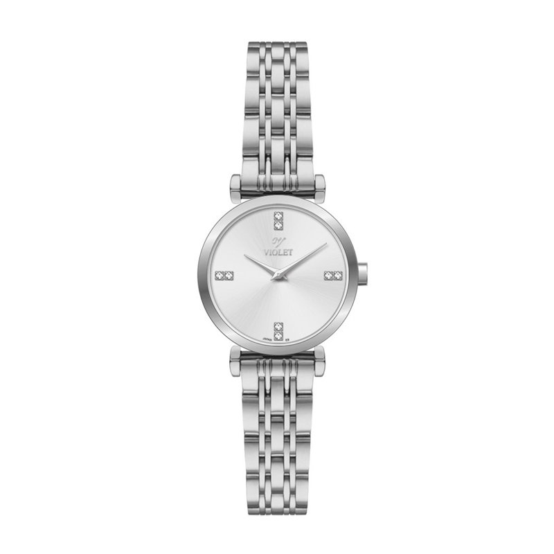 ساعت مچی ویولت،زنانه تک موتوره،گرد فلزی ، استیل صفحه سفید کد 0646