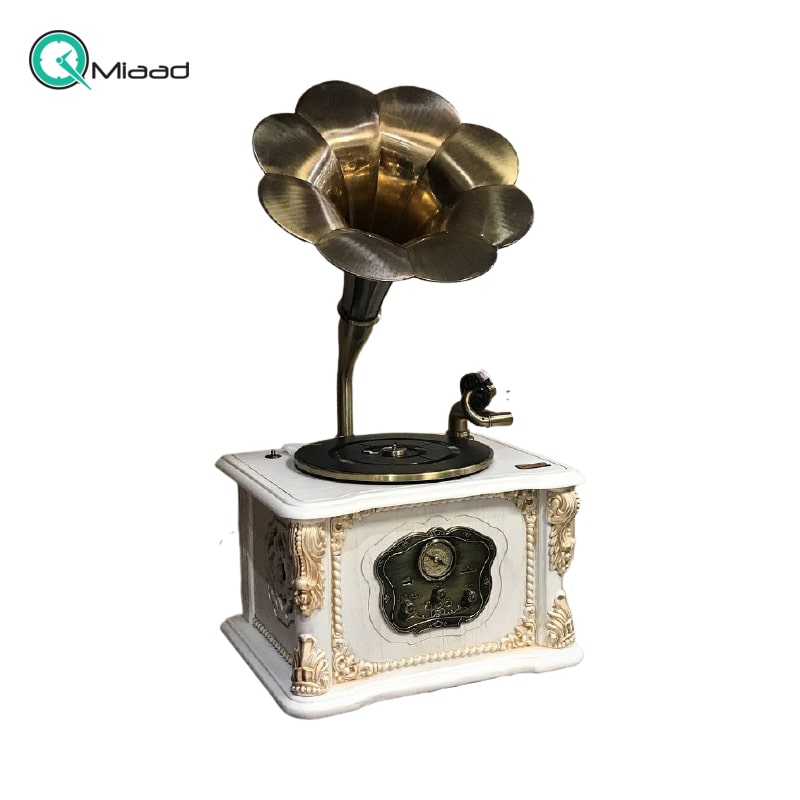 بدنه از جنس چوب، پخش انواع صفحه گرام با سه سرعت، پخش دو موج رادیو AM/FM، خروجی USB، کارت حافظه، اتصال به بلوتوص و پخش صدا به صورت استریو