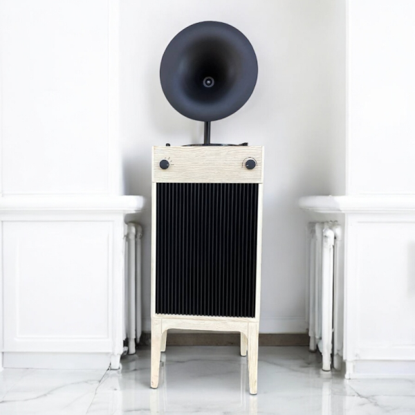 گرامافون ایستاده پلاس والتر مدل 300، گرامافون بی نظیر و مبله والتر پلاس، پخش‌کننده با صدای استریو، بلوتوث، فلش رادیو AM/FM| شیپور فلز آبکاری، رنگ سفید