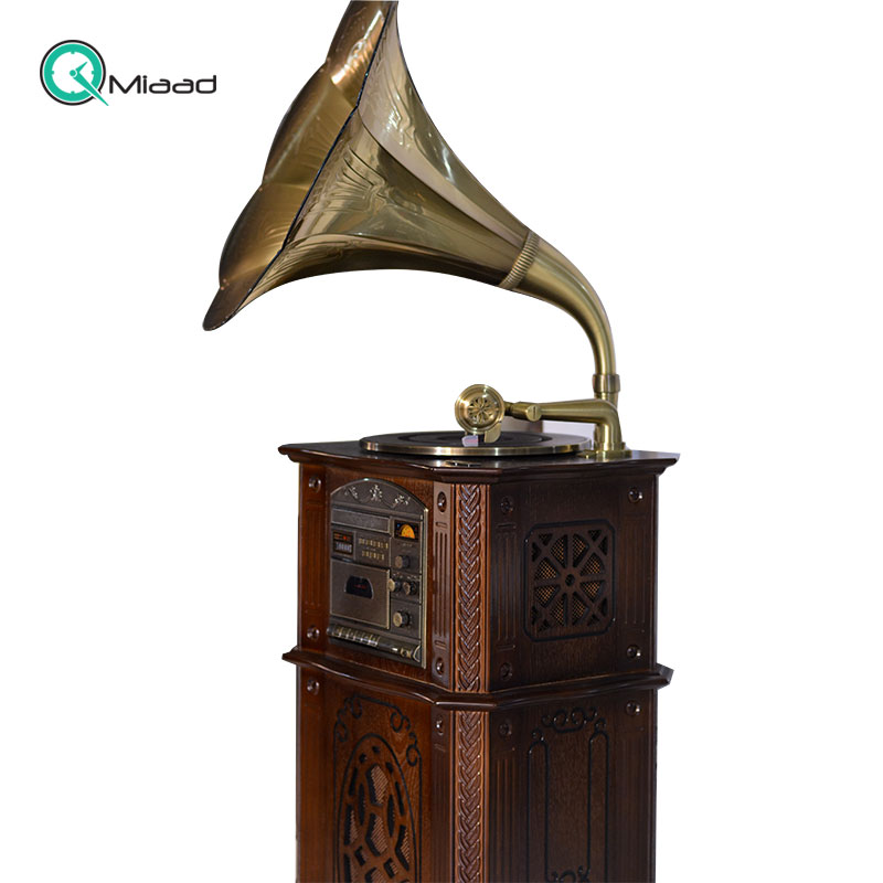 دارای بدنه ای از جنس چوب باکیفیت می باشد. انواع مدل های گرامافون با توجه سبک طراحی زیبا و جذابی که دارند جلوه زیبایی به دکور منزل و یا محیط کاری شما می دهند، گرامافون ها ایستاده علاوه بر تاثیرگذاری بر فضای ظاهری محیط از امکاناتی برخوردار هستند که می توان از آن ها به عنوان یک سیستم پخش نیز استفاده کرد از جمله درگاه USB , امکان اتصال بلوتوث , پشتیبانی از کارت های حافظه SD CARD , پخش رادیو 2 موج و پخش تمامی صفحات گرامافون که اصلی ترین و نوستالژیک ترین کاربرد انواع مدل های گرامافون های ایستاده و رومیزی نیز می باشد.