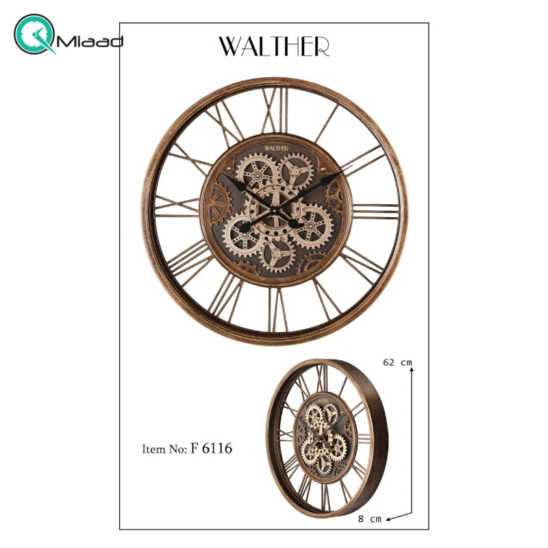 ساعت دیواری چرخ دنده دار والتر Walther کد 6116 یکی از محصولات جدید و فوق العاده برند والتر میباشد که در بخش ساعت دیواری میعاد تایم برای شما موجود شده است. محصولات والتر به گونه ای طراحی شده اند که می توانید طیف گسترده ای از محصولات ساعت دیواری والتر را در فروشگاه میعاد تایم بیابید. امروز مفتخریم که ساعت دیواری جدید والتر را به شما معرفی و ارائه کنیم.