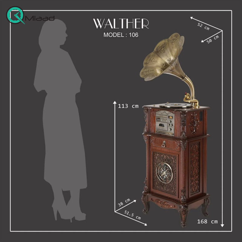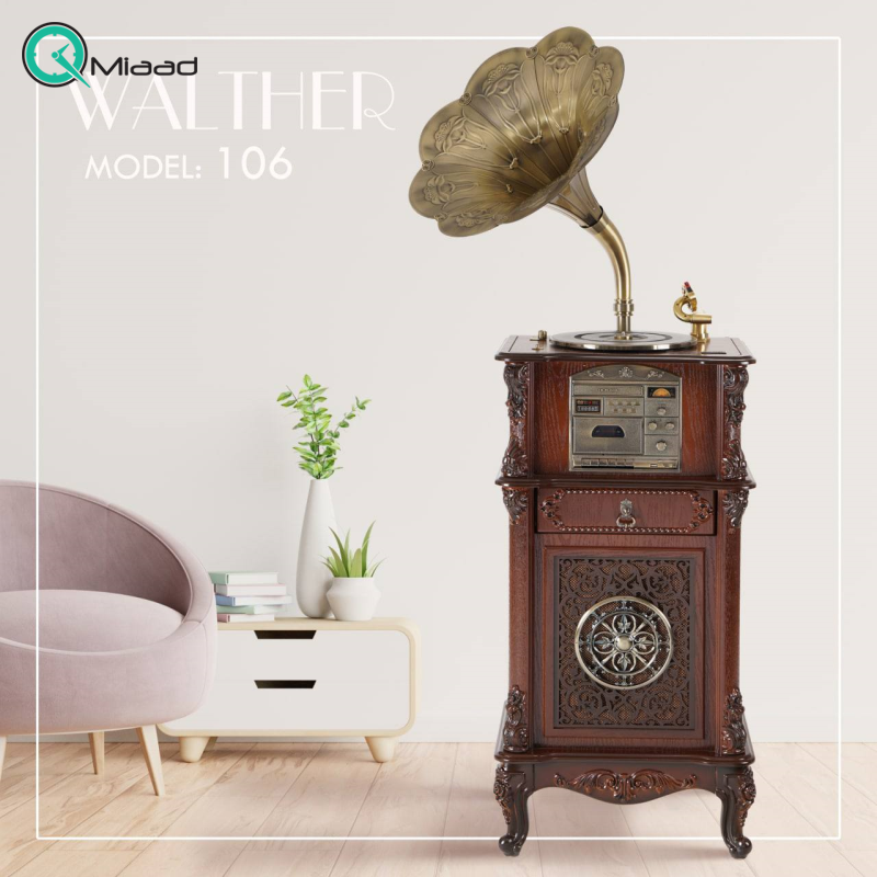 گرامافون ایستاده و مبله 106 برند والتر یک از گرامافون های نوستالژی و کلاسیک و البته با قابلیت های مدرن وب سایت میعاد تایم می باشد. با توجه به قیمت بالای سیستم های پخش، تجهیزات سینمای خانگی و سایر اقلام، اکثریت جامعه از خرید این سری محصولات خودداری می کنند. علاوه بر این، این گرامافون ها ظاهری جذاب و قدیمی دارند. کاربران می توانند از گرامافون برای گوش دادن به آهنگ های مورد علاقه خود بدون نگرانی در مورد راه اندازی سخت افزار یا سیم کشی استفاده کنند. گرامافون مبله را می توان در محل کار یا منزل نیز استفاده کرد. به عبارت دیگر، چه می خواهید سبک زندگی خود را با یک سیستم پخش با کیفیت بالا پر انرژی کنید و از کیفیت بالای صدا لذت ببرید و چه قصد زیباتر کردن محیط و دکوراسیون را دارید، گرامافون دقیقا بهترین انتخاب است. گرامافون مبله والتر مدل 106 محصولی است که امروز در اختیار شما قرار داده ایم. ما جزئیات بیشتری در مورد این محصول به شما خواهیم داد.