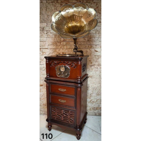 گرامافون ایستاده نیمه فول والتر مدل 110 شیپور فلزی یک از گرامافون های جدید و موجود شده وبسایت میعاد تایم می باشد. اکثریت جامعه به دلیل هزینه های بالای سیستم های پخش، سینمای خانگی و سایر اقلام از خرید این سری از محصولات جلوگیری می کنند. این گرامافون ها نیز ظاهری بسیار جذاب و نوستالژیک دارند. ممکن است با یک سیستم پخش حرفه ای جایگزین شوند. یک سیستم پخش حرفه ای کامل شامل بلندگوها و تمام کابل های لازم است. همین امر هم سبب شده که بدون نگرانی در مورد راه اندازی سخت افزار و سیم کشی، کاربران با استفاده از گرامافونها بتوانند به راحتی به آهنگ های مورد علاقه خود گوش دهند.