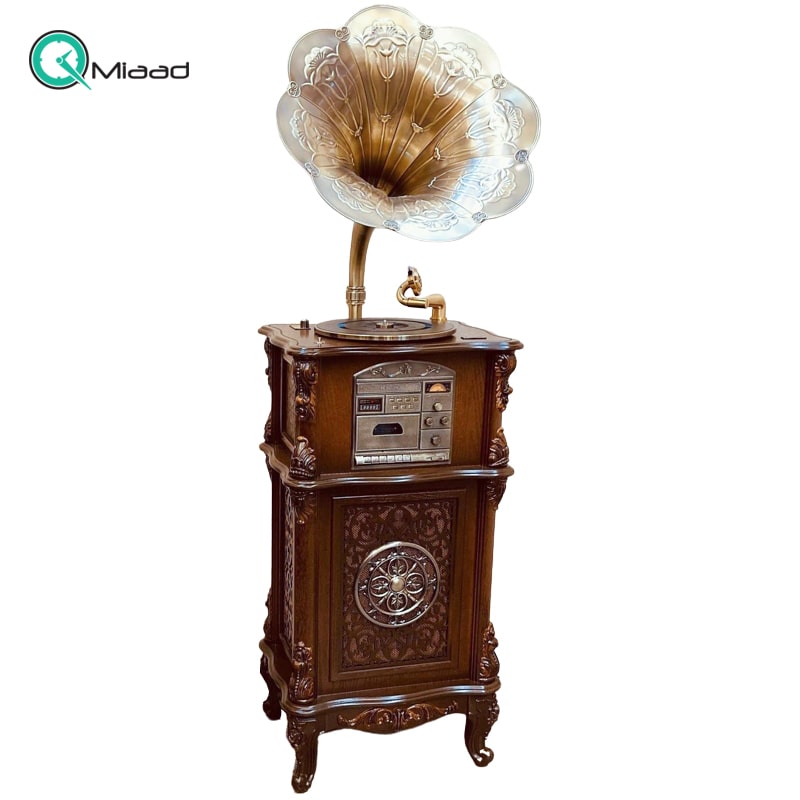 گرامافون ایستاده والتر پنج کاره مدل 2512 ساخت برند معتبر والتر است که دارای بدنه ای از جنس چوب باکیفیت می باشد. این محصول بی نظیر در وب سایت میعاد تایم و در بخش گرامافون برای شما در دسترس است و از همین قسمت میتوانید این محصول بینظیر را تهیه نمایید. پس در ادامه توضیحات بیشتری در مورد گرامافون ایستاده 2512 والتر ارائه میدهیم. گرامافون یکی از نوستالژی و خاطره انگیز ترین وسایلی است که بسیار زیبا و جذاب می باشد. این وسیله از گذشته تا به امروز کار پخش صوت را در اختیار مخاطب قرار میدهد. گرامافون در گذشته بسیار مورد استفاده قرار می گرفت و هنوز هم گهگاهی، هرچند کم، در برخی خانهها استفاده می شود. در گذشته، این دستگاه به سادگی برای پخش صدا، موسیقی و گاهی اوقات رادیو استفاده می شد، اما اکنون با امکانات مدرن گنجانده شدن در این سری محصولات، گرامافونها با یک سیستم پخش حرفه ای برابری کرده و بلکه بهتر از این سیستمها میباشند. علاوه بر این، حفظ ظاهر نوستالژی و کلاسیک گرامافون یکی از مزایا خاص این سری محصولات لوکس می باشد.