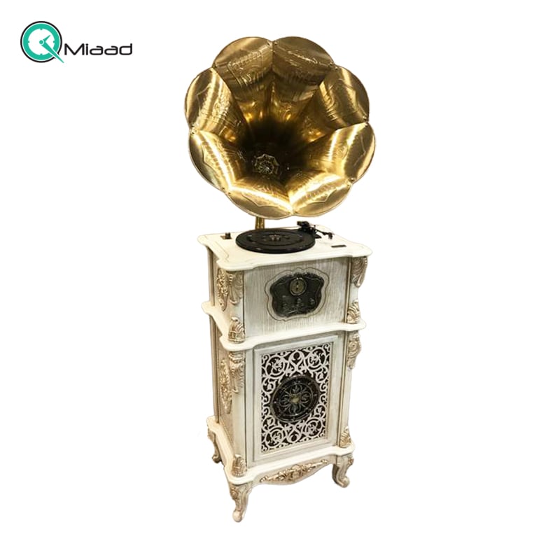 شیپور کلاسیک از جنس پلیمر، بدنه از جنس چوب با کیفیت، رادیو استریو 2 موج AM/FM، دارای درگاه USB، قابلیت اتصال از طریق بلوتوث، پشتیبانی از کارت های حافظه، قابلیت پخش انواع صفحات در سه دور، پنل Plus
