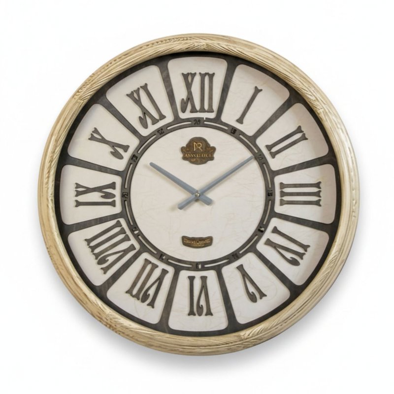 ساعت دیواری بزرگ 70 سانتیمتری ارس با قاب چوب طبیعی و طراحی یونانی. دارای موتور تایوانی میتسو آرامگرد، اعداد برجسته چوبی و چاپ فلت بد با وضوح بالا.