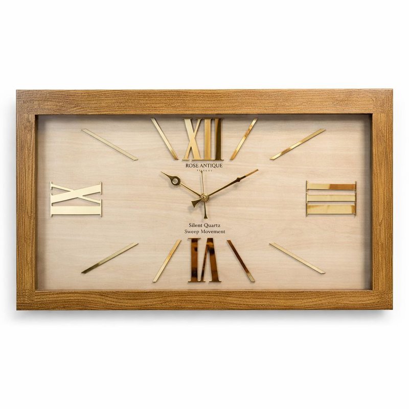 ساعت دیواری چوبی رز آنتیک با ابعاد 80x46. ساخته شده از چوب مرغوب، دارای اعداد برجسته پلکسی و موتور آرامگرد با 2 سال ضمانت. مناسب دکوراسیون کلاسیک و مدرن.