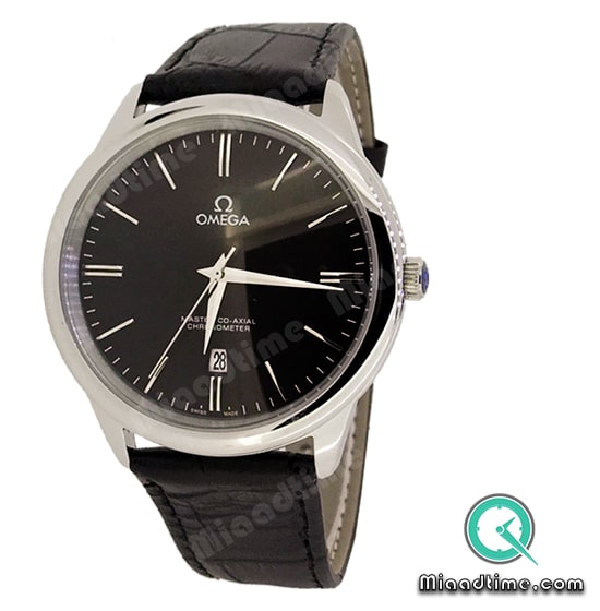 ساعت امگا OMEGA مردانه کلاسیک گرد چرمی سیلور صفحه مشکی کد 5257