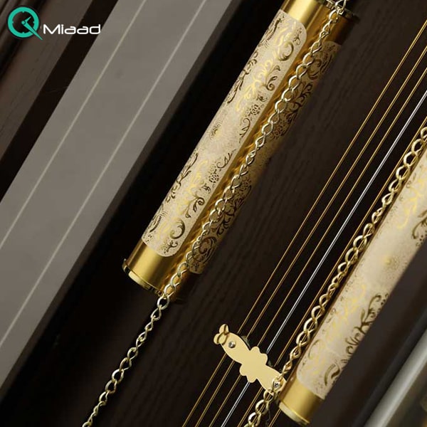 بدنه از جنس چوب، دارای موتور زنگ و پاندول،با طراحي متفاوت درب شيشه و درب ساعت، موتور تایوانی باکیفیت