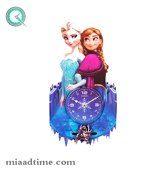 السا و آنا ، خواهرهاي زيبا در كارتون جذاب فروزن 💜💙💜💙💜💙روي ديوار اتاق كودك شما ساعت اتاق كودك لوتوس، مدل Frozen.