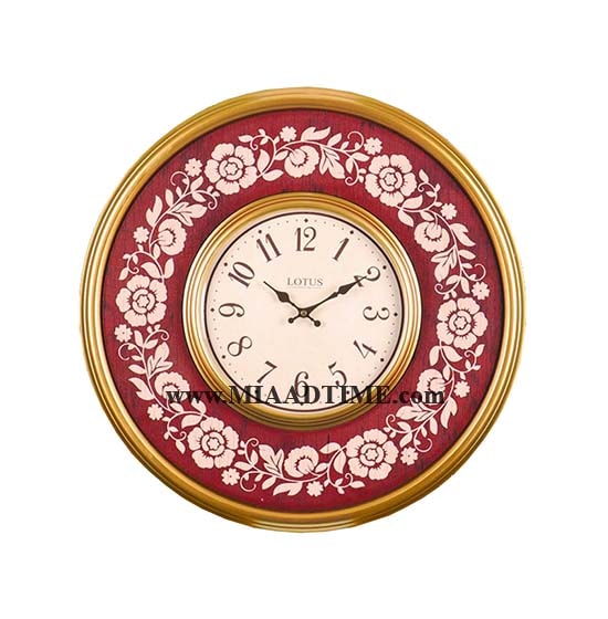 ساعت دیواری چوبی دو رینگ طرح فرانسوی لوتوس گرد مدل FR-663