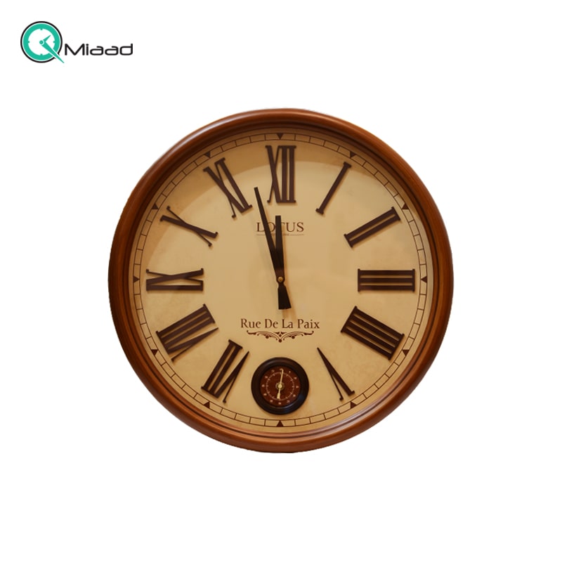 ساعت دیواری چوبی لوتوس مدل 254، ساعت دیواری چوبی لوتوس با موتور ثانیه شمار مستقل، طراحی کلاسیک و فونت رومی اعداد