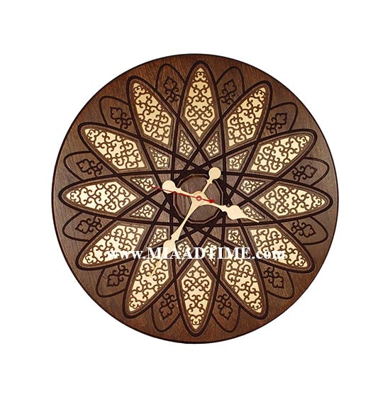 ساعت دیواری چوبی گرد مدل شمس طلایی کد SA 03005