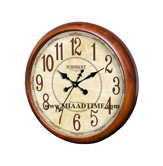 ساعت دیواری چوبی شوبرت مدل 5199S، ساعت دیواری گرد چوبی مدل بنیتو شوبرت، دارای اعداد لاتین خوانا