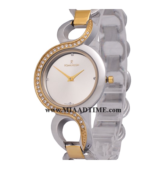 ساعت رومانسون زنانه نگین دار فلزی دو رنگ صفحه سیلور کد 16414