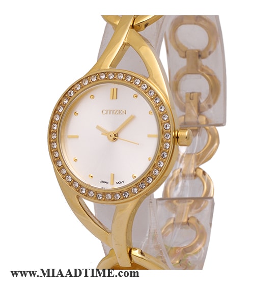 ساعت سیتیزن زنانه نگین دار فلزی طلایی صفحه سفید کد 16415