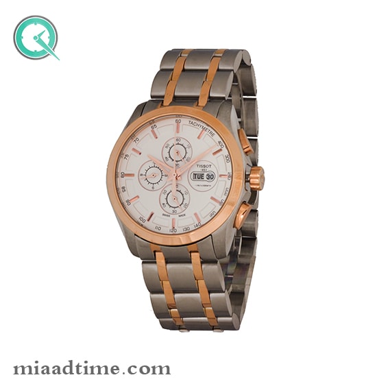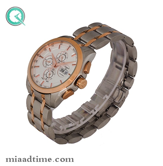 ساعت مچی تیسوت مردانه کرنوگراف دورنگ رزگلد صفحه سفید مدل T035627