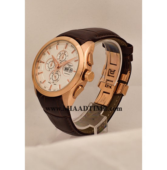 ساعت مچی تیسوت گرد چرمی رزگلد صفحه سفید کد 15011