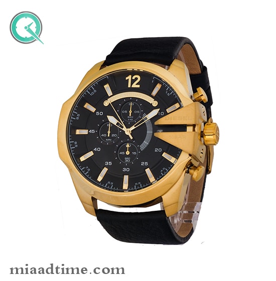 ساعت مچی دیزل مردانه کرنوگراف گرد چرمی طلایی صفحه مشکی مدل DZ-4309