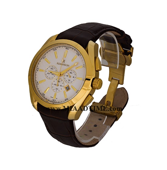 ساعت مچی رومانسون مردانه کرنوگراف گرد چرمی طلایی صفحه سفید کد 1871