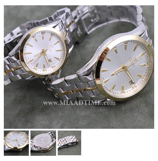 ساعت مچی ست ویولت گرد استیل دو رنگ طلایی صفحه سفید کد 11008