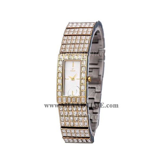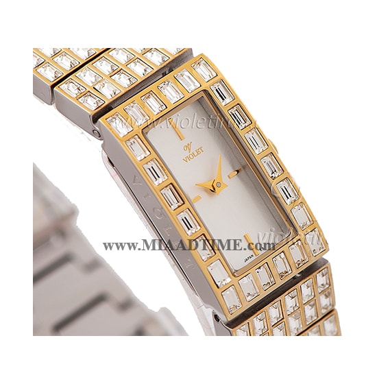 ساعت مچی ویولت زنانه مستطیل نگین دار دو رنگ مدل 0234/2