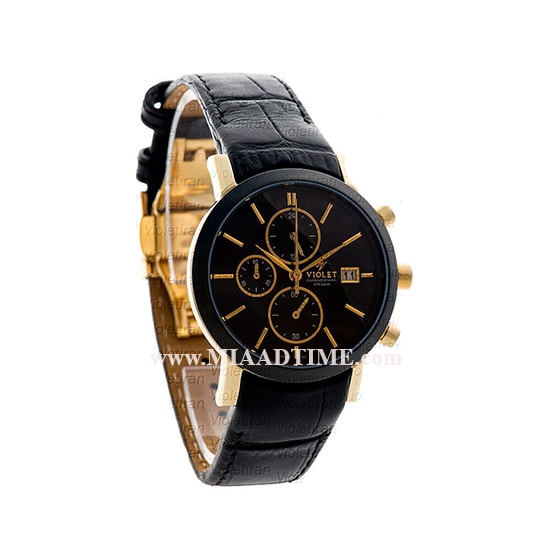 ساعت مچی ویولت زنانه کرنوگراف بند چرم طلایی مشکی صفحه مشکی مدل 0465/2L