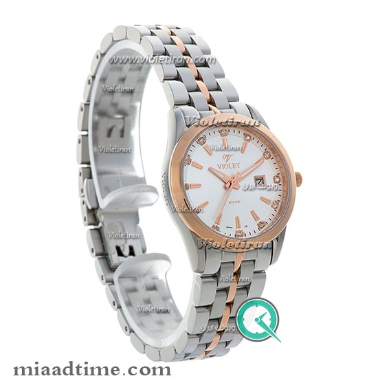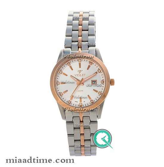 ساعت مچی ویولت، زنانه کلاسیک، گرد فلزی، دو رنگ رزگلد صفحه سفید | کد 0360/2L