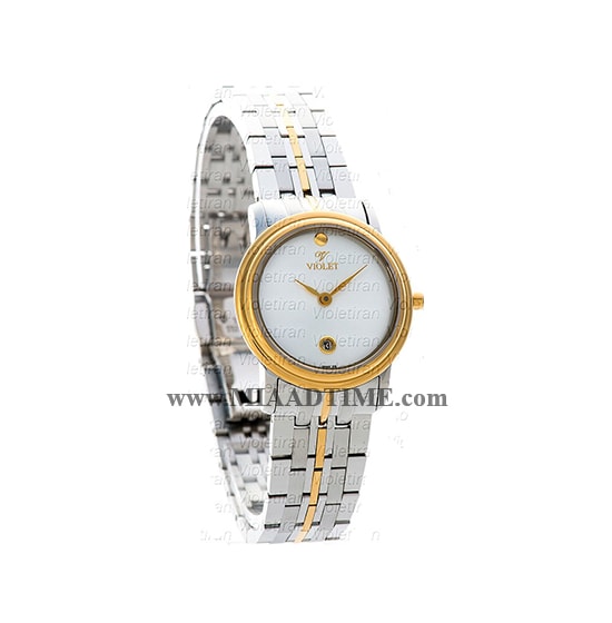 ساعت مچی ویولت زنانه کلاسیک گرد فلزی دو رنگ صفحه سفید کد 0419/2L