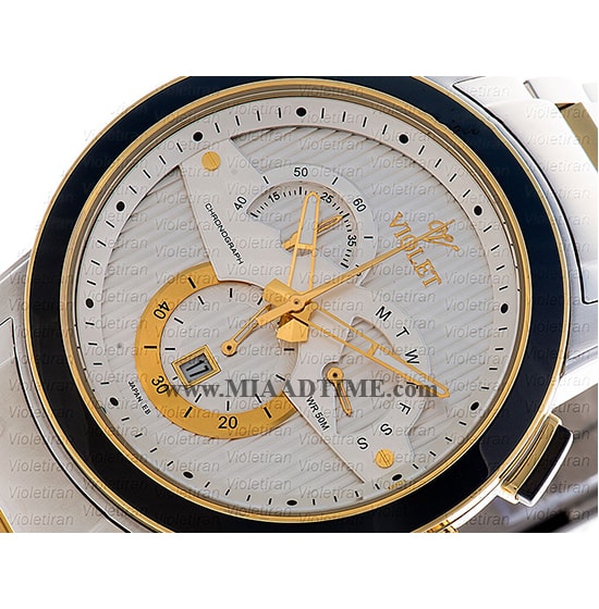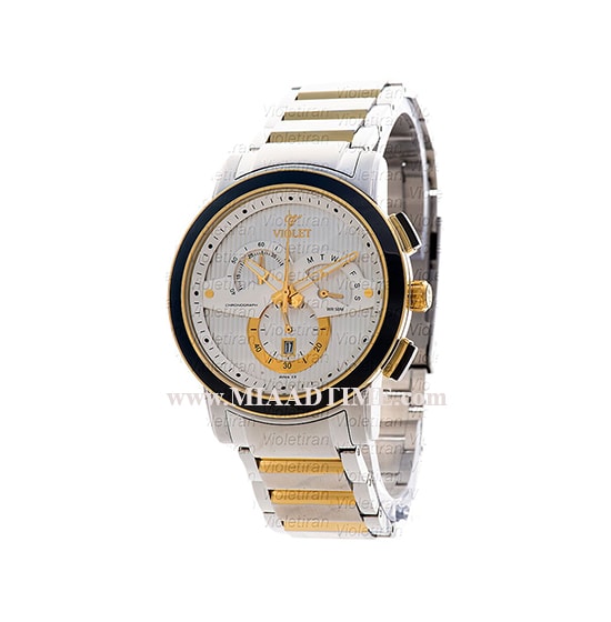 ساعت مچی ویولت مردانه کرنوگراف گرد فلزی دو رنگ صفحه سفید مدل 0411/2G