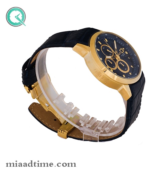 ساعت مچی ویولت، مردانه کرنوگراف، گرد چرمی، طلایی صفحه سرمه ای | کد 0439/2G